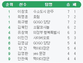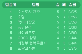 절체절명의 위기를 딛고 4승5패가 된 GOGO양양은 혼돈의 중위권 싸움을 이어갈 수 있게 됐다. 이겼다면 단돇 선두를 노려볼 수 있었던 효림은 5승4패로 뒷걸음치며 잠정 2위.