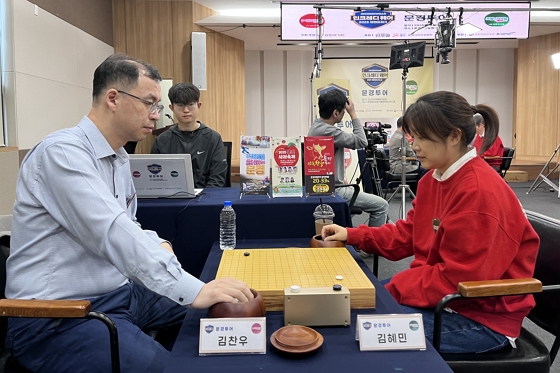 ▲ 19년 만에 재회한 두 기사. 김혜민 9단이 완승으로 시즌 7승2패로 올라섰다. 이창호 9단에게 유일한 패배를 안기는 등 3연승 출발했던 김찬우 7단은 이후 2연패.