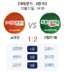 쏘팔코사놀은 21일 오후 2시 경상북도 문경시 문경축산농협 약돌한우프라자에서 열린 정규시즌 9라운드 3경기에서 홈팬들의 응원을 받고 나온 예스문경을 2-1로 꺾었다.
