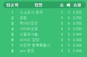 ▲ 팀 순위.