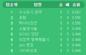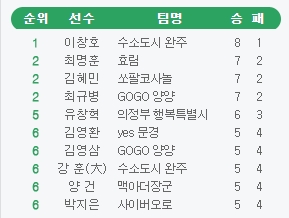한편 개인 다승에서는 이날 승리를 한 이창호 9단이 8승1패로 단독 1위. 그 뒤로 최명훈 9단과 최규병 9단, 김혜민 9단이 7승2패로 쫓고 있다. 지난 시즌까지 4년 연속 다승왕에 올랐던 유창혁 9단은 6승3패.