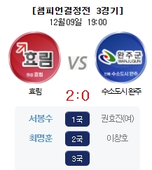 챔피언결정전은 정규리그 1위와 2위가 격돌했다. 효림이 1위로 직행했고, 수소도시완주가 2위를 차지한 후 플레이오프를 거쳐 합류했다.